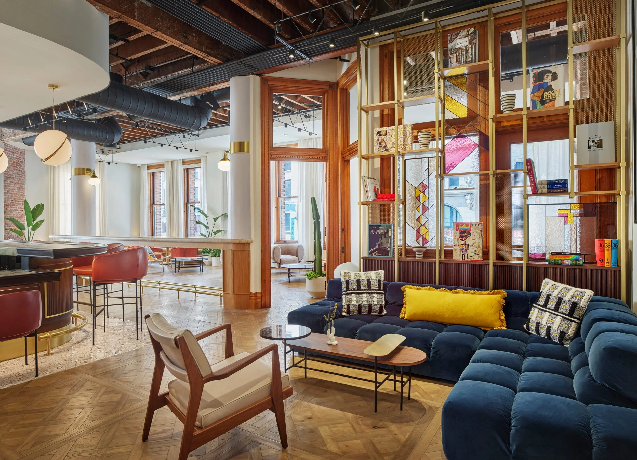 The finished space now includes a mix of work areas, wellness spaces, a café, and a private bar and restaurant, all designed to support the NeueHouse community while celebrating the Bradbury Building’s legacy.