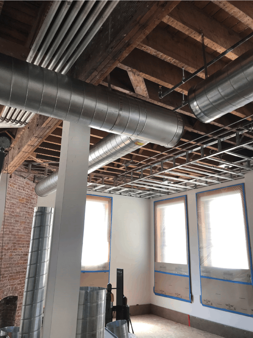 Because many original structural elements remained exposed, routing systems required creative planning. Our team worked closely with trade partners to make sure: